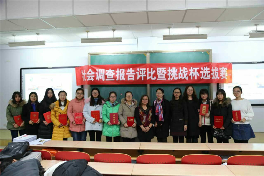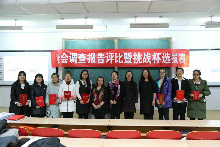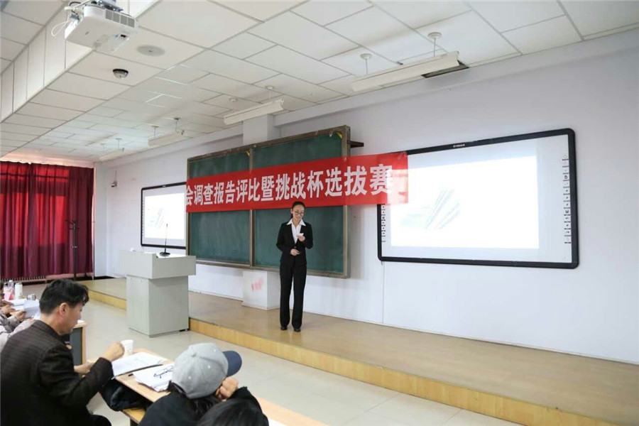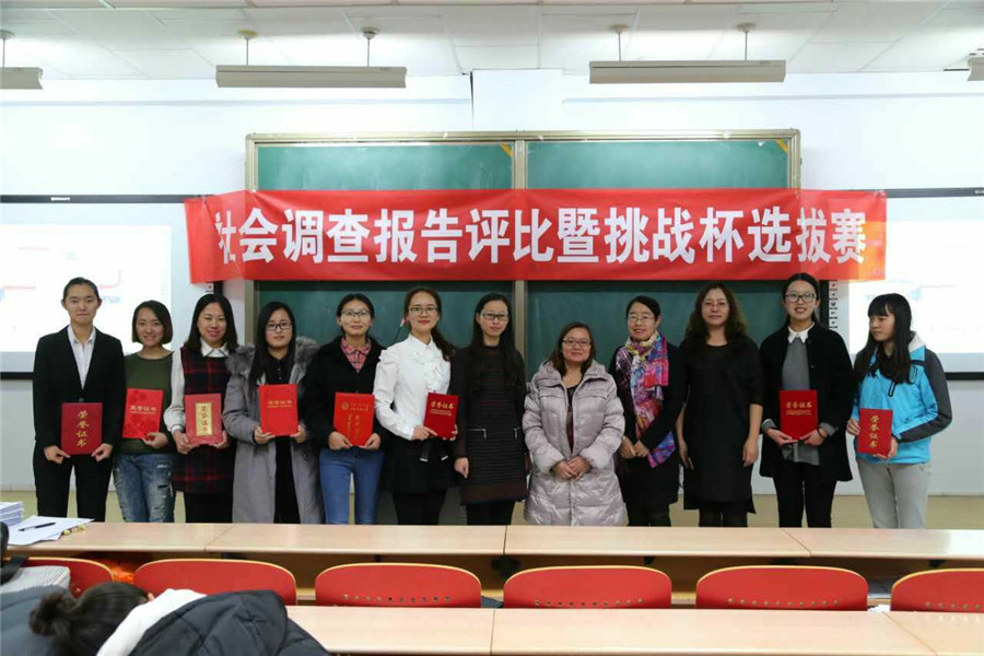 学生的创新精神和实践能力,丰富学生的第二课堂,充分调动起广大学生投参加社会实践的积极性。各班参赛同学的精彩展示也与各位导师的辛勤指导密不可分。经过参赛同学的一番激烈角逐,最后,在经济系的总排名中,赵菲菲组、裴占杰组的调查报告获得一等奖,邓睿组、朱新悦组的调查报告获得二等奖,赵静茹组、薛婷组的调查报告获得三等奖。在管理系的总排名中,赵星宇组的调查报告获得一等奖,刘远洋组及布春雨组的调查报告获得二等奖,陈国锋组、鲁昭组及张雅琦组的调查报告获得三等奖。