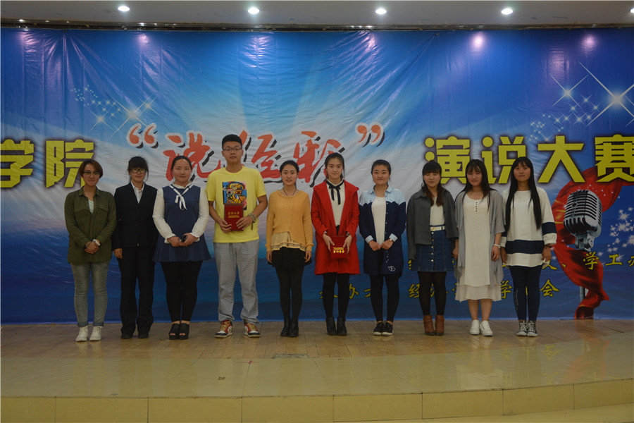 以班级为单位举办了初赛,经过选拔,21位同学进入复赛。在 4月18日举办的复赛中,经过激烈的角逐,7位同学脱颖而出进入决赛,在决赛 “演说战场,谁与争锋”;“社会热点,我有话说”两个环节中7位同学再次上演了激烈的比拼。最终,15级金融班赵津枫同学、经汉班王雅丽同学、张欣冉同学分别获得第一、二、三等奖,14级金融班朱乐乐同学、经蒙班李欣同学、15级金融班任芸谊同学、孙怡冉同学获得优秀奖,15级金融班获得最强演说班级。