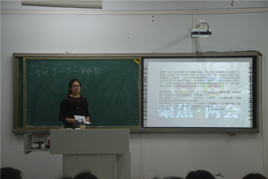 班会活动中,各班活动形式多样、内容丰富,气氛活跃。“两会解读”、“知识竞赛”、“两会片段共赏”等活动受到同学们的喜爱。