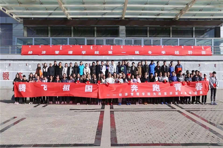 第一届冬季越野赛于11月22日中午12:30在盛乐校区竞秀馆前鸣枪起跑。为庆祝改革开放40年所取得的辉煌成就,学院大一、大二的同学们积极加入到本次越野赛中,为祖国助跑、为改革喝彩。
