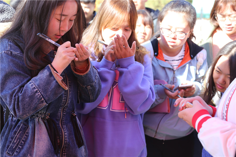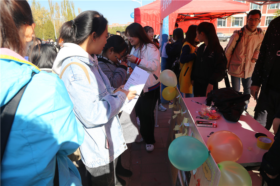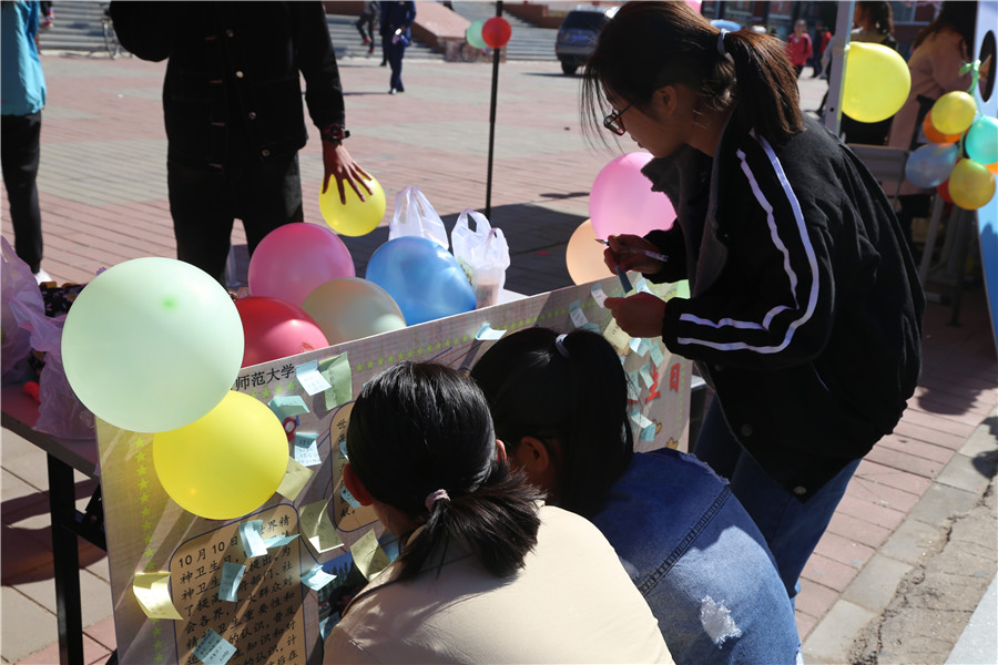 为帮助大学生减缓心理压力,关爱大学生心理健康,水蜜桃直播 参加了“世界精神卫生日心理健康”宣传活动。10月12日,水蜜桃直播 心语馨苑工作站在餐西面向全校学生收集心里话语,将其记录。同时,工作人员用美妙的歌声为大家排除烦扰,减缓心理压力。