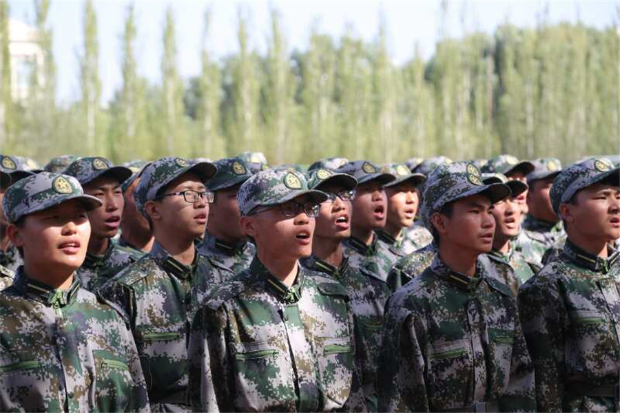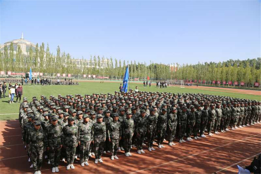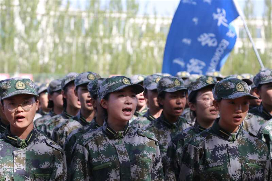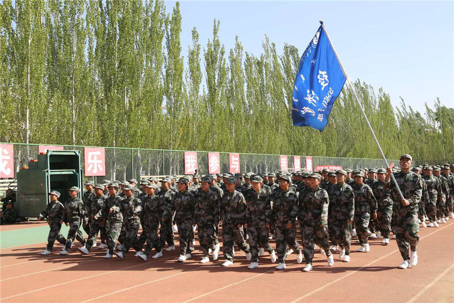 在军训中取得的骄人成果。经过军训的磨练,新生们站在了一个更高的起点,他们翘首以待,整装待发。