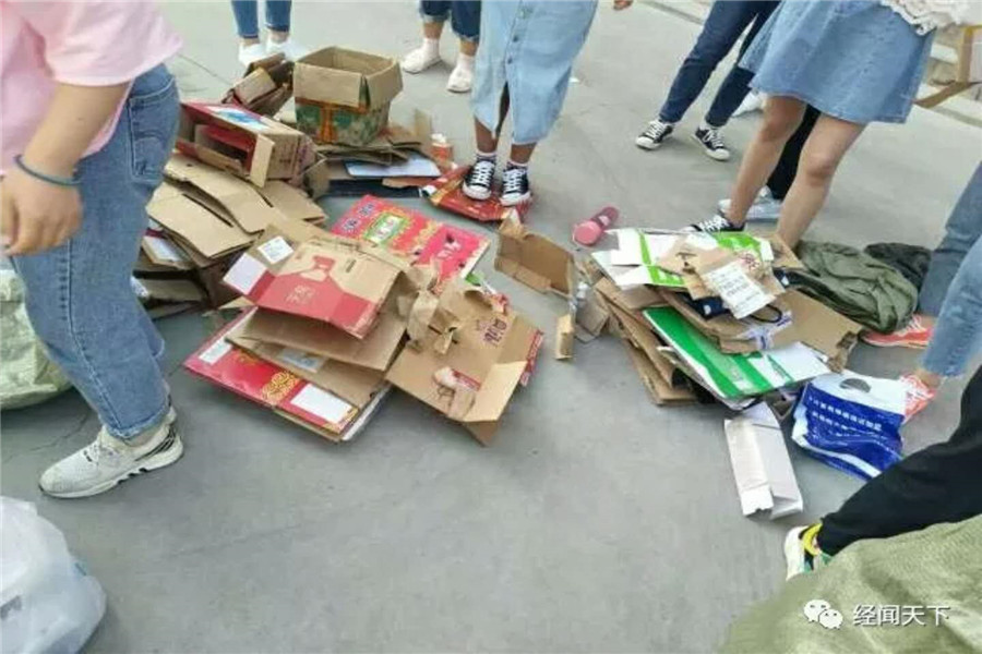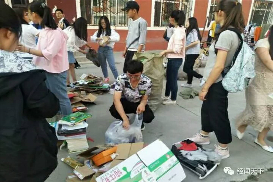 5月17日,经济学院绿·爱环保公益协会在10号宿舍楼前进行公益回收活动,全体社团成员以及活动参与者将回收到的塑料瓶等废旧物品整理分类,并利用收集到的废品换取了一定的社团公益资金。同学们在一起劳动,没有人抱怨,没有人喊累,一时间充满了欢声笑语。