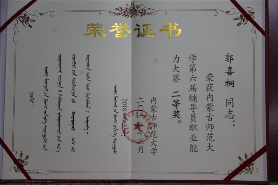 2018年3月,水蜜桃直播 教师在2017年度学生学生工作先进集体、先进个人表彰中获得荣誉,吴高娃老师荣获水蜜桃直播 2017年度“学生工作先进个人”,郭喜桐老师荣获水蜜桃直播 “第六届辅导员职业能力大赛二等奖”。杨蕴丽、岳富贵、麦拉苏、南铁军、张昆五位教师荣获水蜜桃直播 2017年度“优秀班主任”称号。