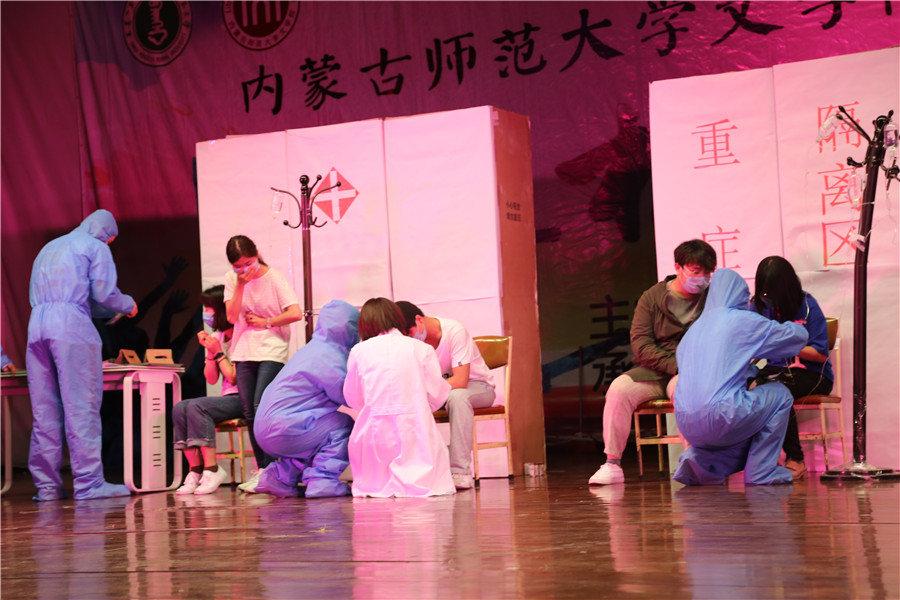 经过一个多月的辛苦排练,舞台剧演员们一遍又一遍的串台词,琢磨每一个动作,他们在反复的排练中做到彼此默契,互相配合。在激烈角逐的比赛中,他们互相打气、相互团结,最终在舞台上脱颖而出,真情实感流露其间,将抗击非典的决心与毅力完美呈现在观众面前,赢得了在场评委老师及观众的一致好评。
