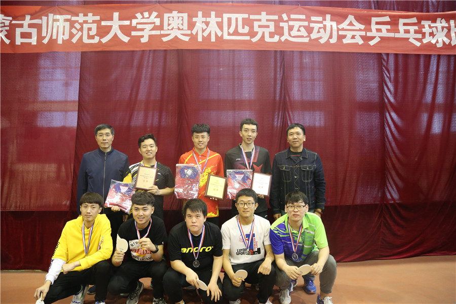 14会计一班王普正和14会计班呼和吉呼获乒乓球男子双打第一名;