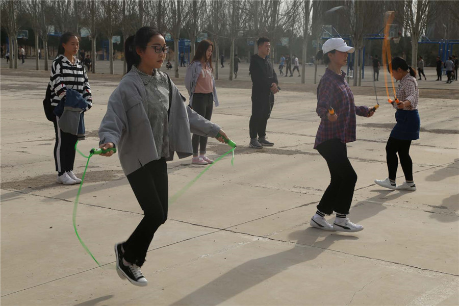 本次比赛中,17级经济蒙班安格乐玛、17级金融理班隋胜男分别获得60秒女子单人换脚第一名、第二名;17级财务管理班张佐艳、17级经济蒙班安格乐玛分别荣获60秒女子单人双脚第一名、第二名;17级经济汉班龙秋志、17级财务管理班焦玉鹏分别获得60秒男子单人双脚第一名、第二名。