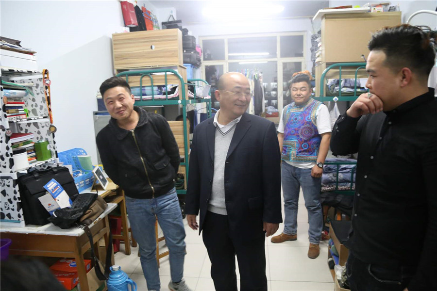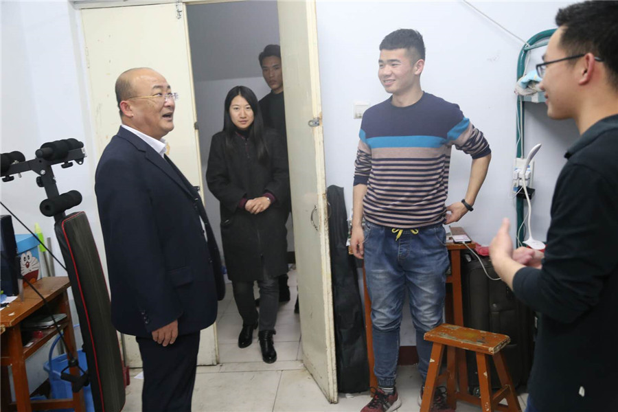 党总支副书记单金平老师、辅导员郭喜桐老师以及学生会干部走进学生宿舍,与学生进行亲切交流。