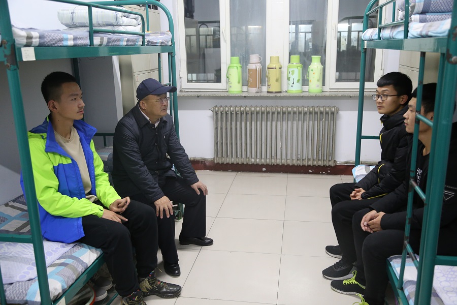 党总支副书记单金平老师、辅导员郭喜桐老师对学生宿舍进行了安全检查。此次安全检查工作主要围绕违章电器、私拉电线等违规现象。在检查过程中,单书记还针对住宿环境、期末复习等问题与学生们进行交流,对同学们的学习和生活关怀备至,并对同学们表示节日的慰问,使留校过元旦的学生感受到学院的温暖。