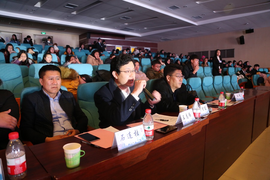 就业指导处副处长王志强、学生工作处副处长石连柱、计算机与信息工程学院党总支书记辛智俊、就业指导处处长助理王利、碧桂园房地产开发有限公司区域人力资源专员许浩谦作为评委出席了决赛,经济学院党总支副书记单金平、辅导员郭喜桐与全体同学一起观看了比赛。