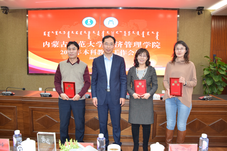 本次会议还举行了学院教学督导员的聘任仪式,齐义军院长为学院教学督导员曹霞、罗翠萍、特格西毕力格颁发了聘书。