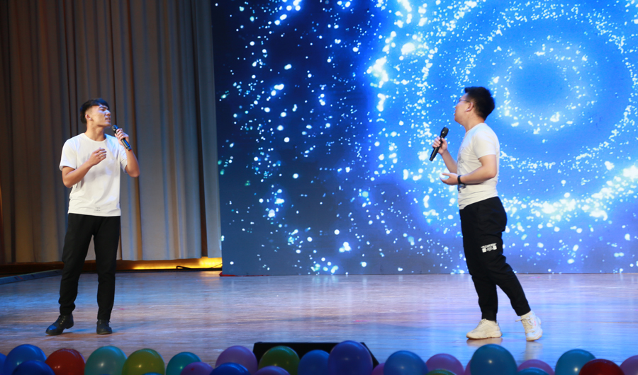 毕业晚会共分为“梦想起航”、“圆梦今朝”、“行且珍惜”三个篇章。同学们表演的歌曲“光阴的故事”、“明天你好”、“奔跑的暖阳”、“再见”、诗朗诵“轻轻地走近”、蒙古族民族服饰展等精彩节目,一次次拨动观众的心弦。包阿优喜老师的“等待”、芦嘉琛老师的“同桌的你”、张蕾老师与胡昱先老师的诗朗诵“毕业季”,博得了阵阵掌声与欢呼声。