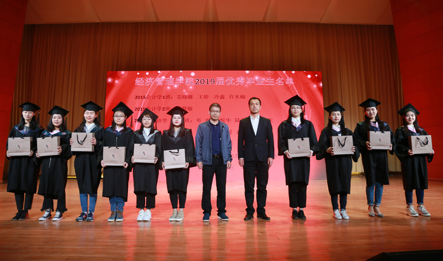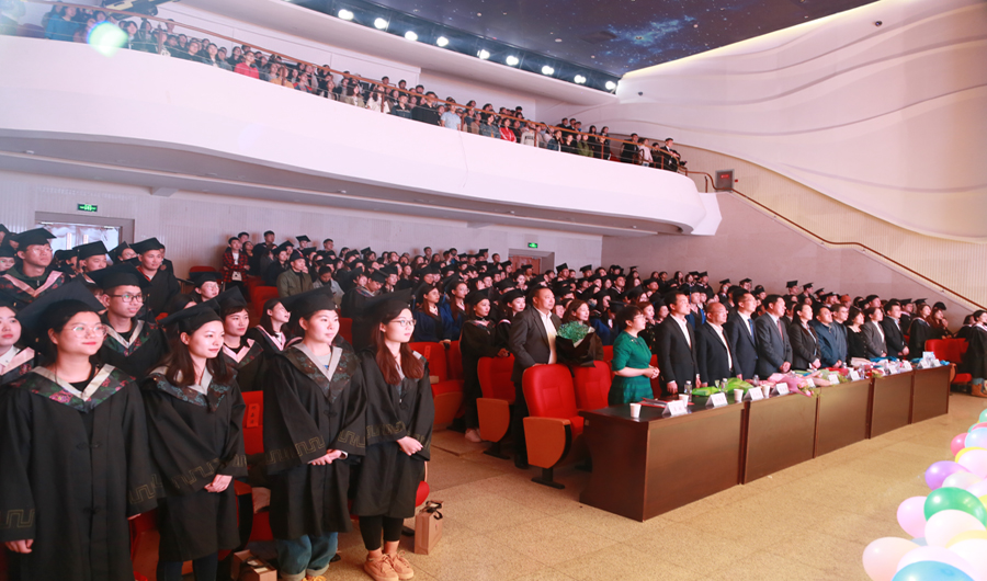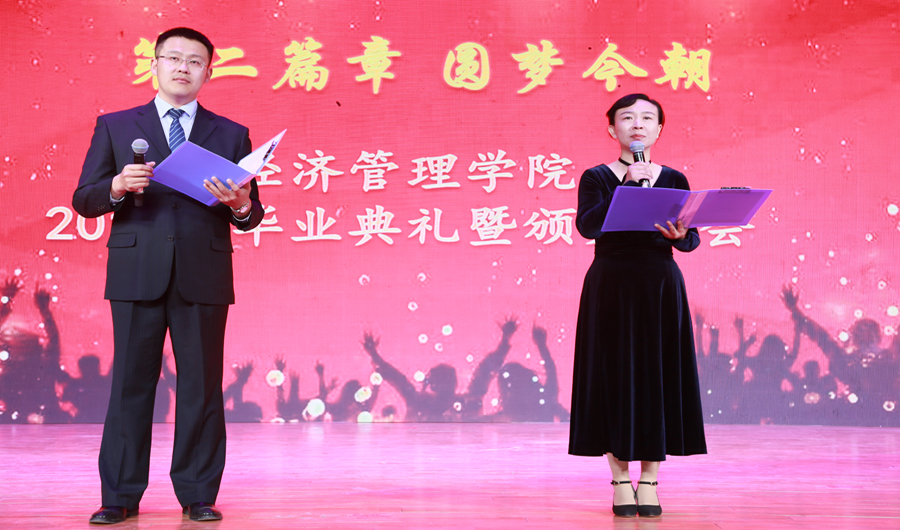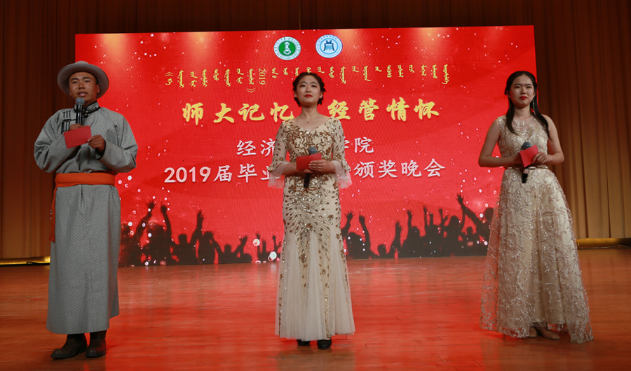 在盛乐校区民艺楼音乐厅举行了盛大的主题为“师大记忆,经管情怀”的2019届毕业典礼及颁奖晚会。莅临毕业典礼暨毕业表彰晚会的领导有:校党委委员、副校长刘九万研究员,后勤管理处党总支书记、处长单金平,学工部部长、学生处处长斯钦,学工部副部长、团委副书记包双成,教务处副处长苏贵斌。学院党委书记包凤兰教授、院长齐义军教授、副书记副院长安广峰、副院长胡伟华教授参加毕业典礼暨毕业表彰晚会。参加毕业典礼暨毕业表彰晚会的还有学院学术委员会成员、各系部主任、各毕业班班主任、学院部分老师代表以及2019届12名硕士研究生和225名本科毕业生。