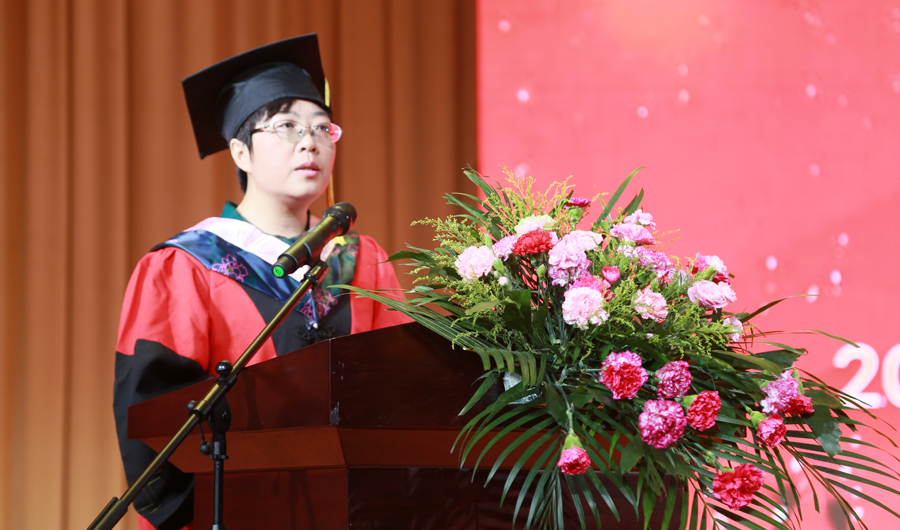 刘九万副校长代表学校向所有的毕业生表示衷心的祝贺,对同学们取得的成绩和对师大发展的贡献表示充分的肯定。刘校长寄语学院毕业生,作为师大人,要时刻铭记师大校训、传承师大精神,做志存高远、心系天下的师大人,成为师大的一面旗帜;作为寻梦人,在寻梦的路上,要始终与祖国同梦想、同奋斗、同前进,要心怀家国,为国家崛起、民族复兴担当大任;作为当代青年,生逢其时,重任在肩,一定要牢记习近平总书记对青年的嘱托,树立远大理想、热爱伟大祖国、担当时代责任、勇于砥砺奋斗、练就过硬本领、锤炼品德修为。