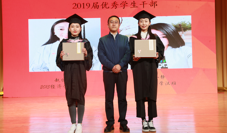 斯钦部长为获得“优秀学生干部”同学颁奖