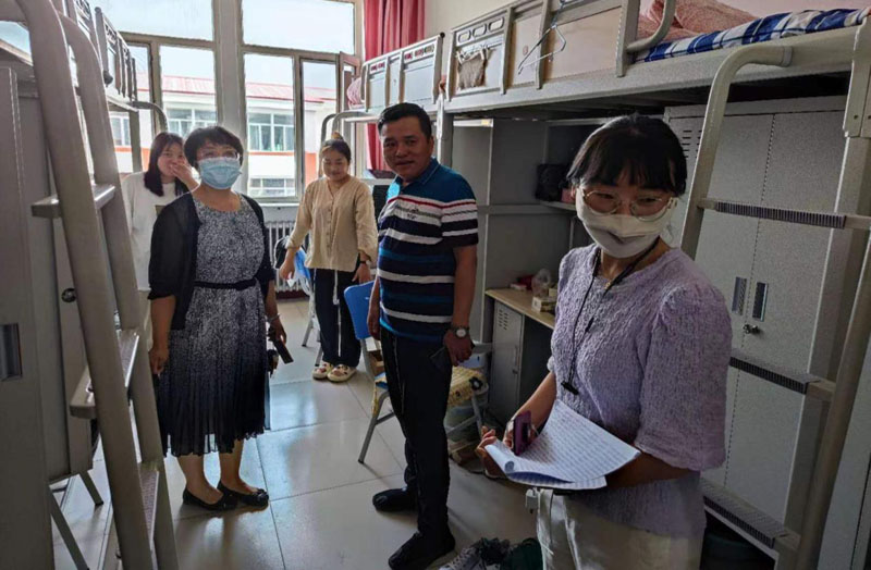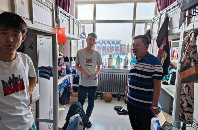 8月1日下午,水蜜桃直播 党委书记智如水、副院长胡伟华、办公室主任任傅宇以及全体辅导员深入学生宿舍,看望慰问返校学生和2022届专升本新生。