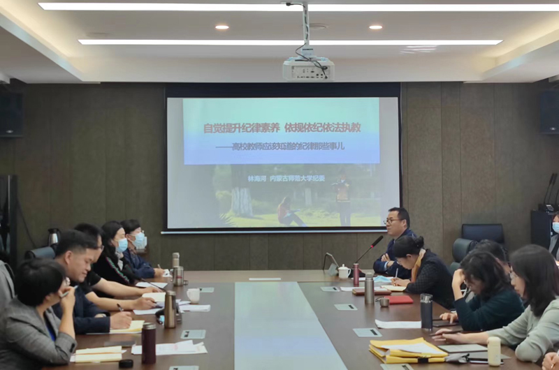 林海河以《自觉提升纪律素养 依规依纪依法执教》为题,以《新时代高校教师职业行为十项准则》等相关纪律法规文件为纲。从纪委角度通过生动的警示案例教育,分析了高校老师在教学、工作、生活中可能出现的政治生活庸俗化交易化问题,明确了师德师风的底线和红线。