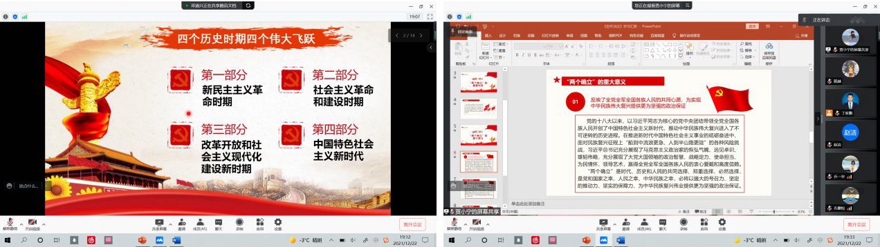 通过学习汇报,同学们对党的十九届六中全会精神和《决议》内容有了更加深刻的理解,纷纷表示要坚定理想信念,更加牢记初心使命,为实现中华民族伟大复兴的中国梦而不懈奋斗!