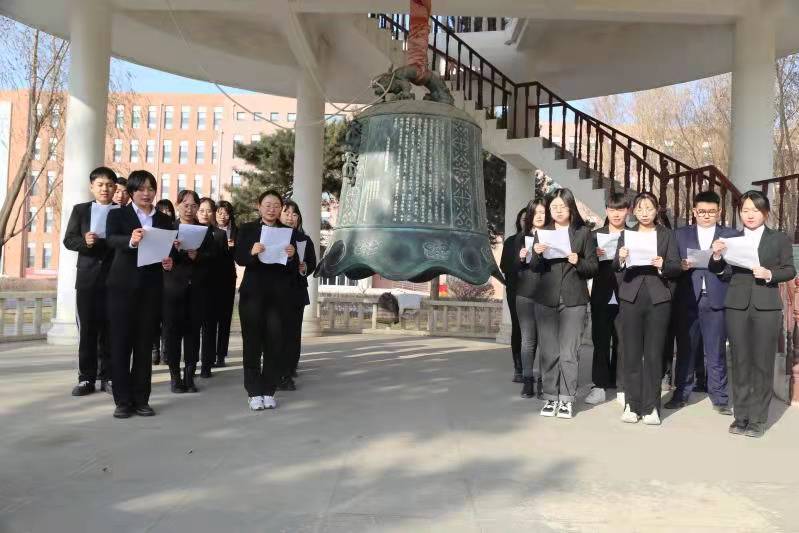本科生第二党支部的党员同志们在校园钟楼前举办公祭日悼念活动,共同朗诵《和平宣言》。