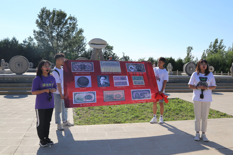 本次活动主要参观了芍药园、国防教育基地、中华钱币坛三个景点。由本科生组成的讲解队结合平时所学为师生进行了讲解。在芍药园,师生们了解到和林县秉持“绿水青山就是金山银山”的科学发展理念,大力发展生态旅游产业有效带动了当地经济发展,同时生态文明建设也极大的改善了当地居民的居住环境,提高了人民生活水平。在国防教育基地,学生讲解员带领师生们回顾了人民军队从弱小走向强大的武器装备发展历程。在中华钱币坛,学生讲解员向师生们介绍了中华民族货币发展史,重点介绍了革命战争年代各地苏区、解放区曾经发行过的货币、金融机构和金融制度。