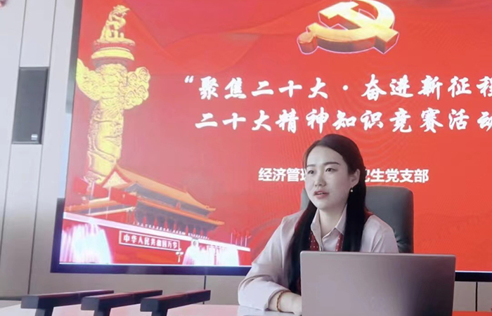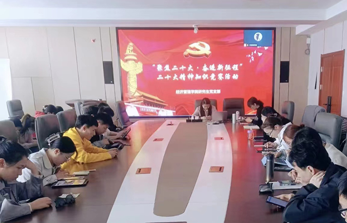 研究生党支部持续深入学习贯彻党的二十大精神,采取集中学习、自主学习、微党课、金句学习、视频学习、榜样教育、知识竞赛等多种形式,引导研究生认真学习和领悟党的二十大提出的新观点、新论断、新思想,持续推动党的二十大精神落到实处。4月11日,支部围绕“聚焦二十大·奋进新征程”主题开展党的二十大精神专项知识竞赛活动。