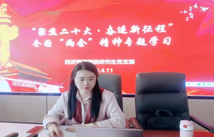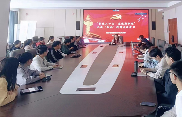 研究生党支部于2023年4月11日召开“聚焦二十大·奋进新征程”——全国两会精神专题学习会议。支部全体党员、入党积极分子参加会议,会议由支部书记乔涵主持。