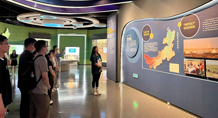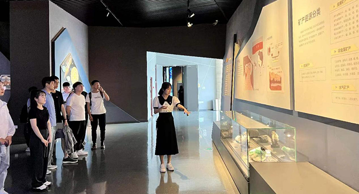 在党员同志的讲解带领下,同学们先后参观了壮美内蒙古、绿色内蒙古、富饶内蒙古三个展厅。壮美内蒙古展厅包括“大森林”、“大草原”、“大水域”及“大荒漠”四大展区,主要展现内蒙古壮美的自然景观。绿色内蒙古展厅主要展示内蒙古具有代表性的绿色资源产业、绿色发展策略及习近平生态文明思想的实践成果。富饶内蒙古展厅以矿产资源为主线,重点介绍内蒙古矿产资源成因、种类、分布特征以及矿山开采利用的历史和现状。
