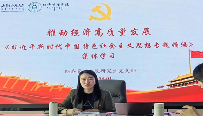 研究生党支部于2023年6月1日在学院楼503会议室召开“推动经济高质量发展”——《习近平新时代中国特色社会主义思想专题摘编》专题学习会议。会议由支部书记乔涵主持,支部全体党员、党员发展对象、入党积极分子参加会议。