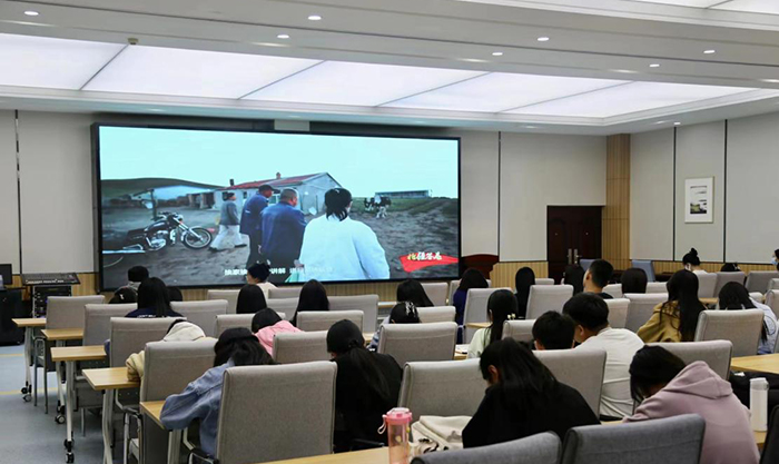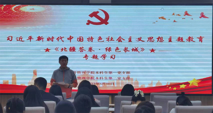 本科生第一党支部与本科生第二党支部于2023年5月10日联合开展主题教育学习,会议由宝苏雅拉老师主持,全体党员共同观看《北疆答卷·绿色长城》专题节目。