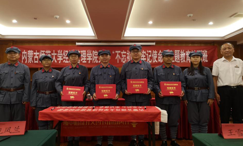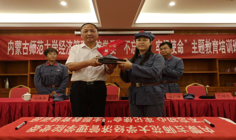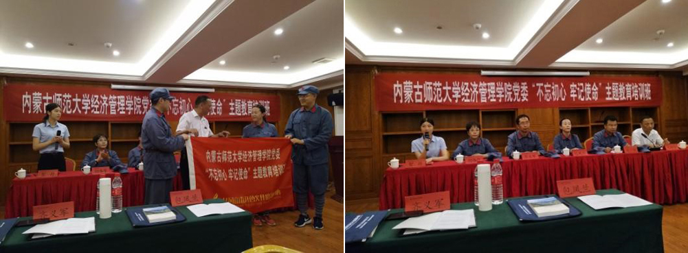 “不忘初心、牢记使命”培训班结班仪式。包凤兰书记、巴特尔校长先后致辞,乌兰、杨艳和马运泽代表全体学员作了学习心得汇报。所有学员在班旗上签字后结班仪式顺利结束。