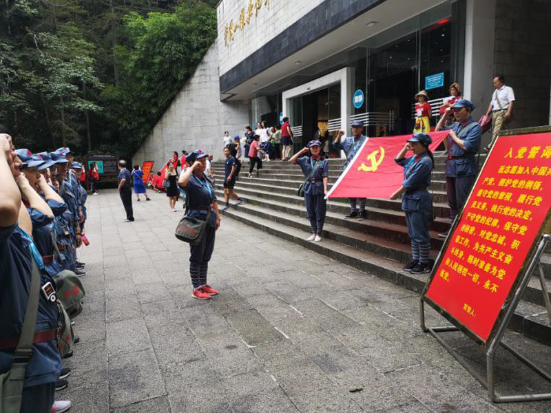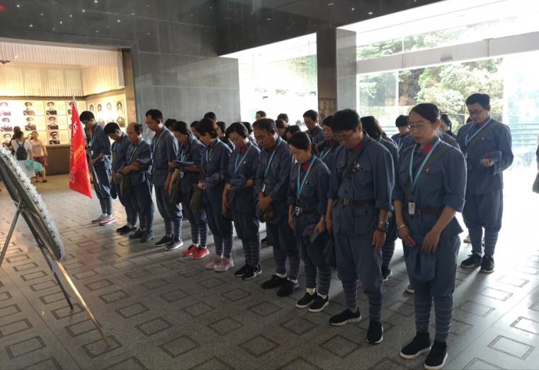 7月19日上午9时,前往全景画馆和井冈山革命烈士陵园进行现场教学,烈士陵园庄严肃穆,39名学员共同追寻井冈山的峥嵘岁月,祭奠革命烈士,向革命先烈们敬献花圈,并在现场重温入党誓词。下午前往大井朱毛旧居和水口进行现场教学。