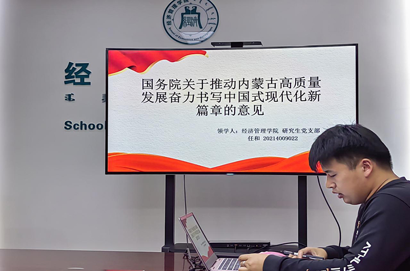 研究生党支部于2023年10月20日召开 《国务院关于推动内蒙古高质量发展奋力书写中国式现代化新篇章的意见》(以下简称《意见》)集中学习研讨会。会议由支部书记乔涵主持,支部全体党员参加会议。
