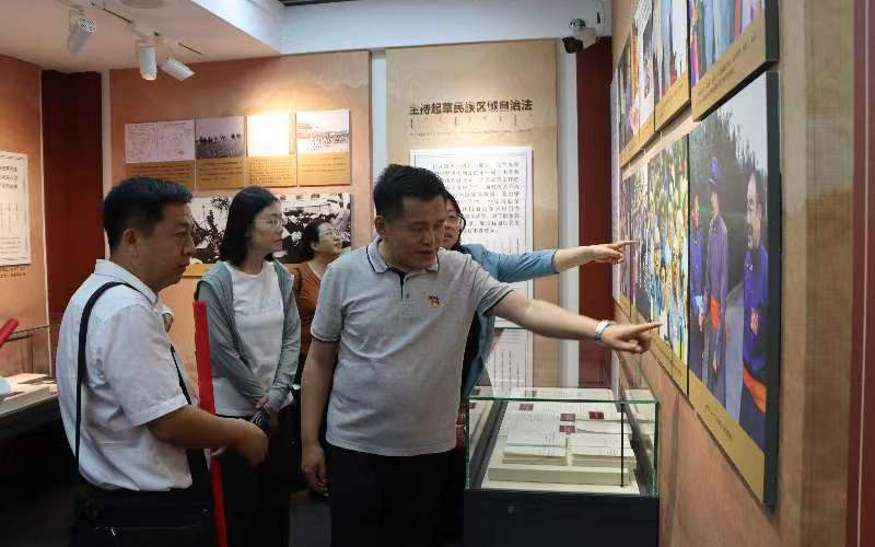乌兰夫故居位于土默特左旗塔布赛村,是乌兰夫同志出生、成长和早期从事革命活动的地方。大家随着讲解员的讲解步入展厅,从“族源家世、青少年时期、播撒火种、故土情缘、光辉历程”五个方面了解了乌兰夫同志艰苦朴素却光荣伟大的一生,感受到了他对党的革命事业献出的心血和创下的丰功伟绩。大家被乌兰夫同志全心全意为人民服务、为革命鞠躬尽瘁的精神所感染。
