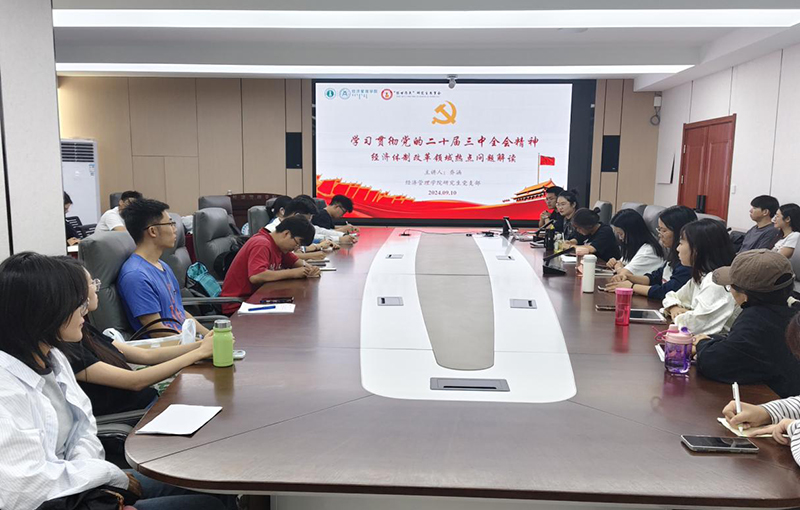 为深入学习贯彻党的二十届三中全会精神,引导研究生坚定理想信念、提升理论水平,学院研究生党支部于2024年9月10日,在盛乐校区学院楼503会议室召开“学习贯彻党的二十届三中全会精神——经济体制改革领域热点问题解读”专题学习研讨会。会议由研究生党支部书记乔涵主持,支部全体党员、党员发展对象、入党积极分子参加会议。