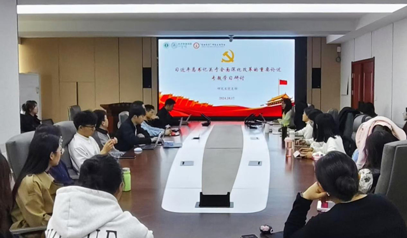 为深入学习贯彻党的二十届三中全会精神,学院研究生党支部于10月17日,在盛乐校区学院楼503会议室召开“习近平总书记关于全面深化改革的重要论述”专题学习研讨会,会议由支部书记乔涵主持,支部全体党员、党员发展对象、入党积极分子参加会议。