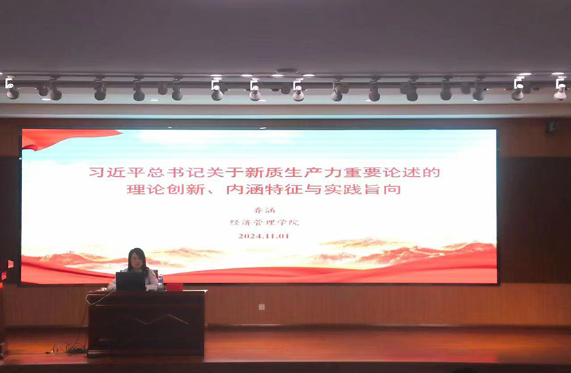为深入学习贯彻党的二十届三中全会精神和习近平总书记关于新质生产力的重要论述,10月30日至11月1日,水蜜桃直播 分别举办了师生学习宣传贯彻党的二十届三中全会精神专题报告会。学院党委宣传委员、研究生党支部书记乔涵以《习近平总书记关于新质生产力重要论述的理论创新、内涵特征与实践旨向》为主题进行专题授课。全体教职工以及230余名学生分别参加报告会。