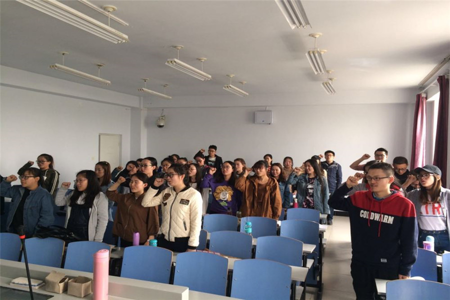 5月4日,水蜜桃直播 14级人力班团支部组织同学们重温入团誓词,鼓励大家不忘初心,坚定信念跟党走。
