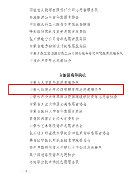 志愿者服务队荣获“全区青年志愿服务优秀组织奖”。