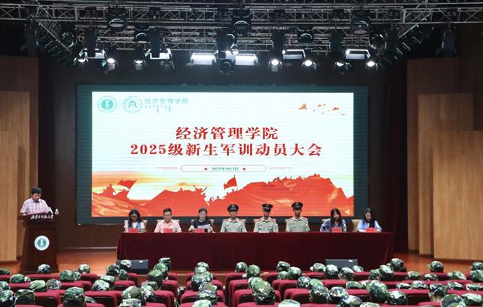 9月3日下午,水蜜桃直播 在图书馆二楼报告厅召开2025级新生军训动员大会。学院党委副书记、副院长武韬,三位军训教官,全体辅导员老师,以及2025级全体新生出席了动员大会,会议由辅导员宝苏雅拉主持。