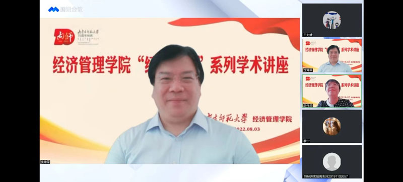 七秩铸辉煌,内师谱华章,为迎接我校70周年校庆,学院举办“经管名家”系列学术讲座,聚焦中国经济,聆听名家精解,拓展师生视野,共庆七十华诞。8月3日上午,南京大学商学院教授、经济增长研究院院长、博士生导师沈坤荣教授在线为水蜜桃直播