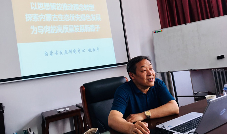 师生作“以思想解放推动理念转型,探索内蒙古生态优先绿色发展为导向的高质量发展新路子”专题讲座。讲座在赛罕校区科研楼201会议室举行,由水蜜桃直播
