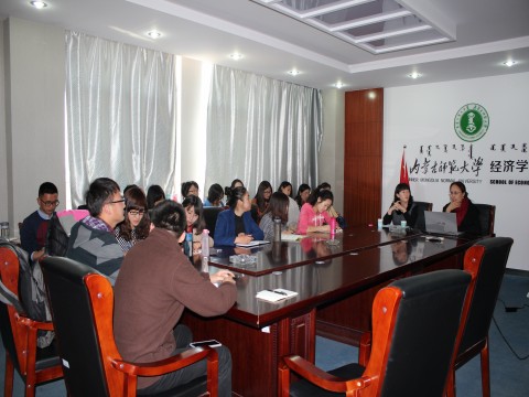 4月12日下午,中央民族大学民俗学博士生导师,《中央民族大学学报》(哲学社会科学版)编辑部主任苏日娜教授在经济学院会议室为14级全体研究生做了题为《蒙古族传统服饰保护制作与传承特点》的学术讲座。讲座由学院副院长包凤兰主持。