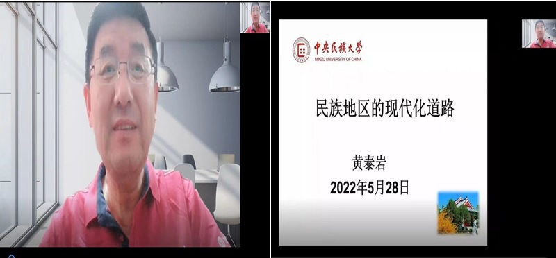 七秩铸辉煌,内师谱华章,为迎接我校70周年校庆,学院举办“经管名家”系列学术讲座,聚焦中国经济,聆听名家精解,拓展师生视野,共庆七十华诞。5月28日下午,中央民族大学原校长、博士生导师、中国兴边富民战略研究院院长黄泰岩教授在线为我校师生主讲“民族地区的现代化道路”。讲座由学院院长齐义军教授主持,以线上线下相结合的方式进行。学院党政领导班子、学院教师在线下,其他学院教师和水蜜桃直播