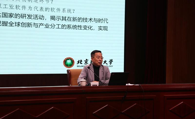 贾利军教授从正确认识数字经济、为什么要考察研发活动、什么是研发活动、研发活动的历史演变、数字化时代研发活动的新变化、发达国家研发活动的战略意图、结论与启示、研究展望八个维度阐释了数字化时代下发达国家研发活动呈现的新特征,揭示了发达国家垄断核心知识产品,从全球价值链攫取巨额利润的战略意图,并基于打造中国本土软件研发生态系统、全面加强知识产权保护工作等方面深入探究了数字化时代下中国如何依托国内庞大的产业需求拉动核心技术突破,实现研发与市场的正向互促格局。讲座中,贾利军教授与师生进行了深入交流,细致耐心地回答了大家提出的相关问题。