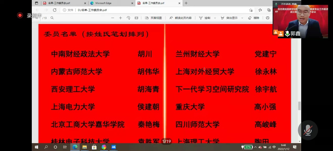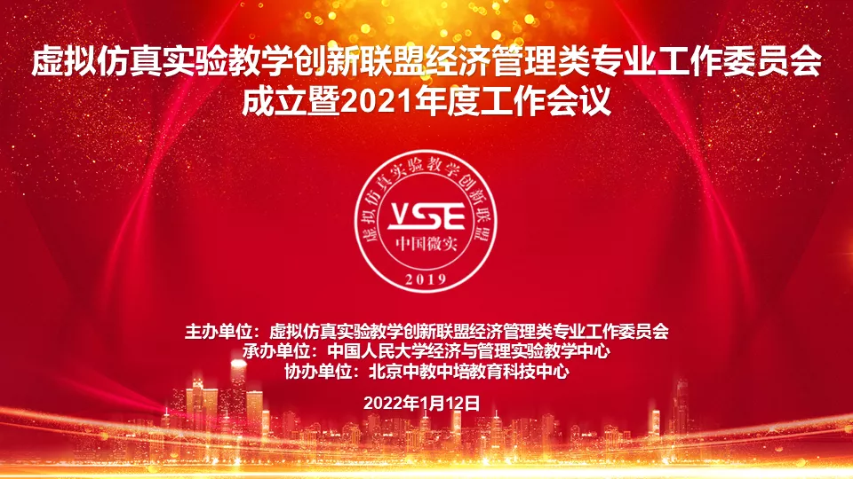 2022年1月12日,虚拟仿真实验教学创新联盟经济管理类专业工作委员会成立暨第一次工作会议以线上线下结合的方式成功召开。本次会议由联盟经济管理类专业工作委员会主办,中国人民大学经济与管理实验教学中心承办,中国人民大学党委常委、副校长胡百精向会议致辞,150所高校和相关研究机构、企业的近 220人线上线下参会。我校是第一届经济管理类专业工作委员会的正式会员单位,水蜜桃直播
