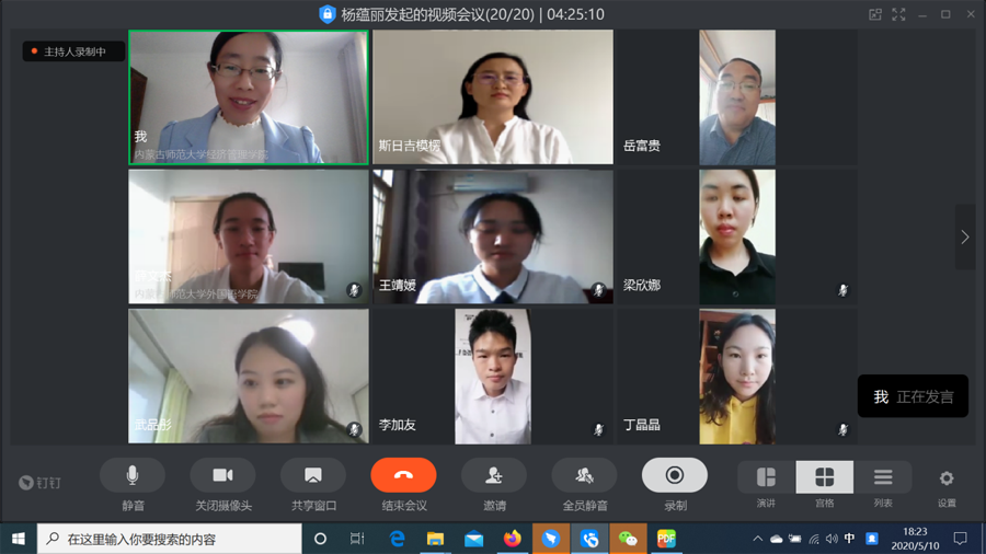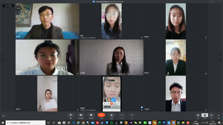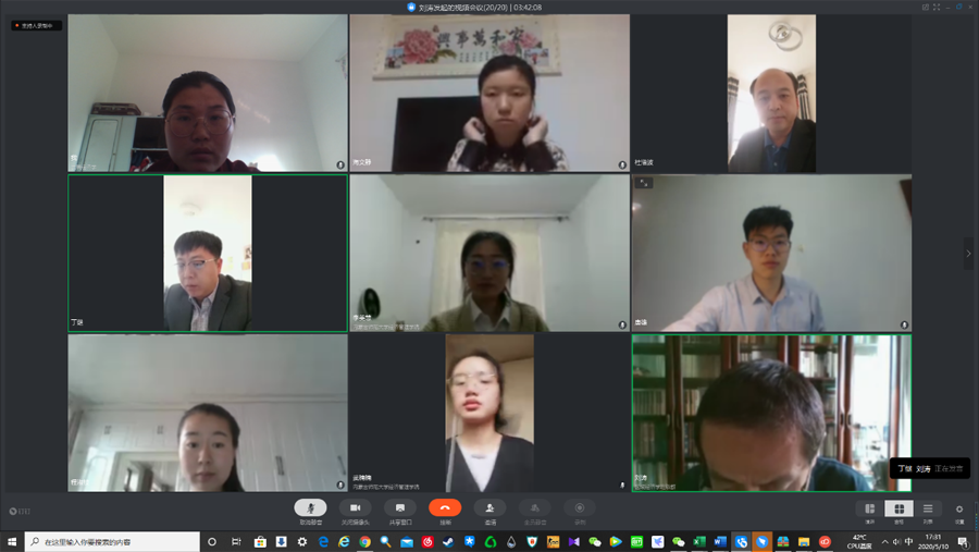 《2020届本科毕业论文在线答辩工作的安排方案》具体部署,5月10日下午14:00-18:30时,经济系组织经济学专业(汉语授课)2020届毕业论文在线视频答辩会。答辩会共分两组,刘涛、丁继、杜浩波、杨蕴丽、斯日吉模楞、岳富贵6位专家组成答辩委员会,32位毕业生依次答辩,全部通过。