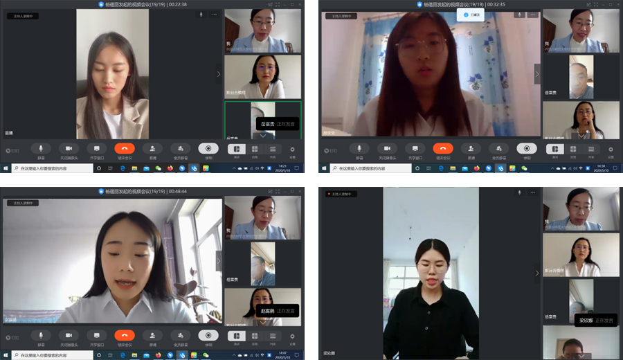 从各组答辩现场来看,网络比较顺畅,师生着正装,精神饱满。答辩同学依次陈述了毕业论文的写作背景、研究思路、研究发现、根据匿名评审意见修改情况,认真记录了答辩组专家的修改建议,并回答了专家们的现场提问。
