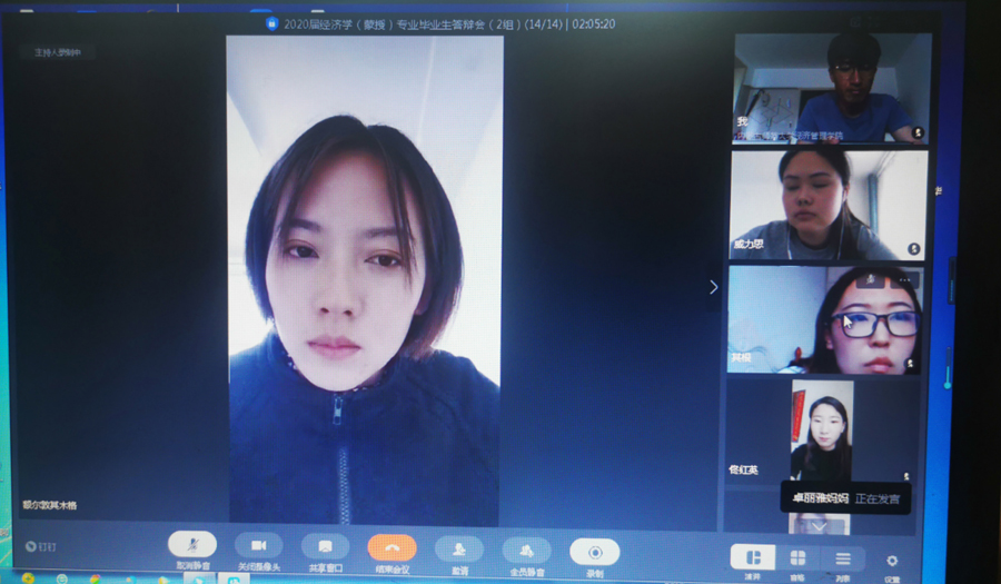 从答辩现场来看,网络较为顺畅,偶有断网情况,同学们精神面貌良好,多数同学认真准备了陈述稿,并对老师们提出的问题回答良好。从今年论文整体情况来看,论文质量普遍有所提高,可以看出虽然在特殊时期同学们没有放松学习、老师们克服困难进行了积极指导。值得强调的是,在师资不充裕的情况下,教研室特格西毕力格老师带病参加了此次答辩会。