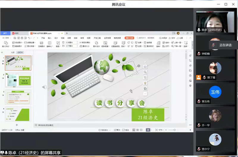 通过腾讯会议在线开展了“开卷有益,阅享经典”2022年第一期读书分享会,本期读书分享会由2021级经济史专业研究生郭丁瑞同学主持,研一研二全体研究生参加此次读书分享会。本次分享的五位同学对其分享的书籍进行了简要的概括,突出重点内容,激发了同学们对相关内容的探讨。