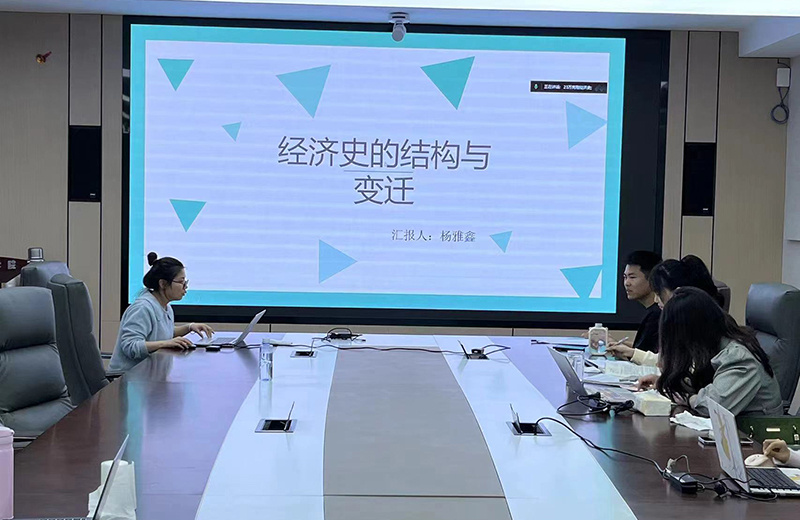 其次,杨雅鑫同学对道格拉斯·诺斯的《经济史的结构与变迁》进行分享。通过对理论部分、历史部分和理论与历史的结合部分的概述,深入探讨了书中的几个关键章节,如新古典派的国家理论、经济组织的分析框架、意识形态与搭便车问题、产权理论等,并对每个理论进行了详细的解释和讨论,强调了制度、产权和意识形态在经济变迁中的作用,以及国家在经济发展中的关键角色。